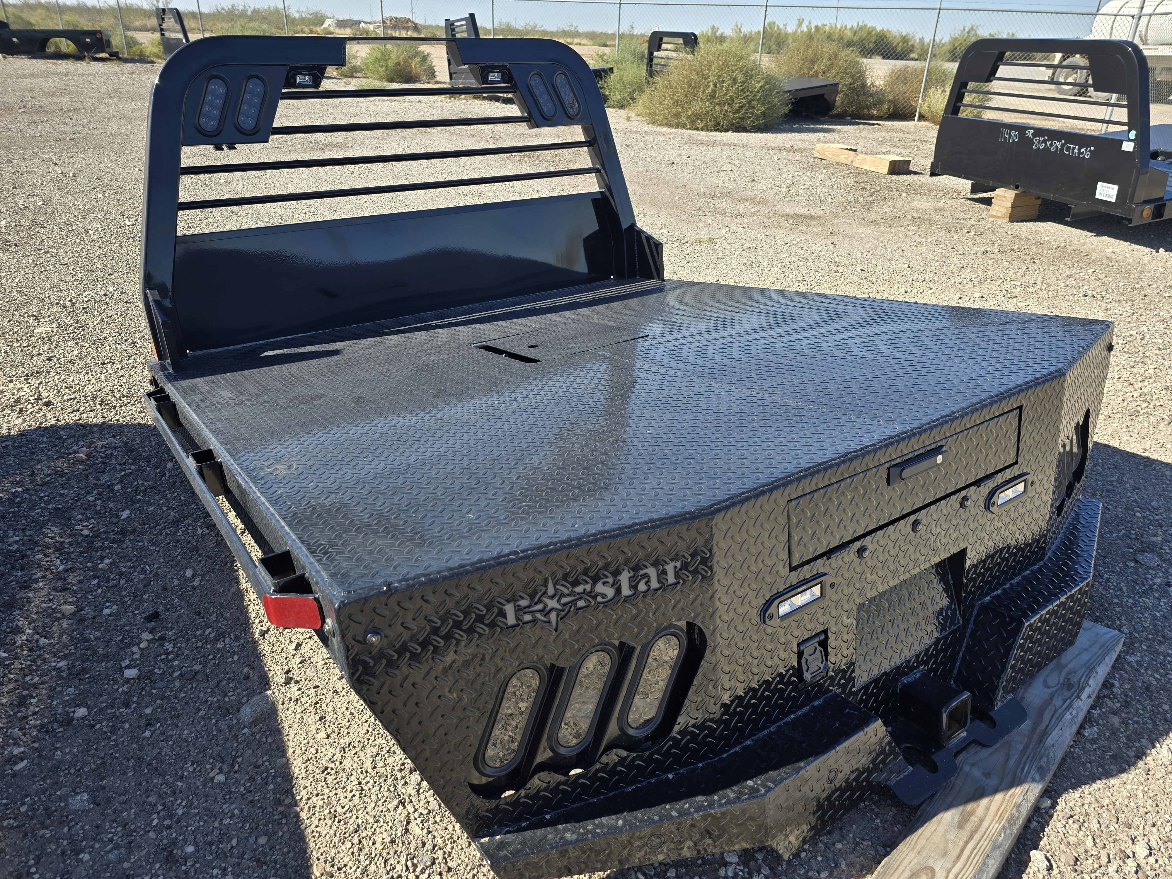 The SD bed comes with 2 verticalcabinets, 2 angled boxes, 2 top boxes, and 2 rear underbody boxes - plus abonus locking rear shovel compartment for tons of storage. Multiple optionchoices allow you to build this bed to your industry. All doors are gas shockequipped and locking paddle latches are standard - as well as a serviceable,tamper-resistant integrated door hinge system. Our 2.5" receiver allowsyou to add a hitch for bumper pull cargo and a 2 5/16" gooseneck ball isstandard in case you are hauling a heavyweight. Our receivers are lab testedand certified for 18,500 lbs bumper capacity and 30,000 lbs gooseneck capacity.Standard adjustable galvanized tool trays with available cabinet tool drawerscan add the finishing touch if you have a lot of parts or tools for yourworkload. Dual LED rear work lights and cast aluminum light housings, as wellas tail gate, are standard features on the SD. These beds are a perfectcomplement for any single or dual wheel work truck with smooth 12 gauge sides,11 gauge bumper and gloss black powder coating.