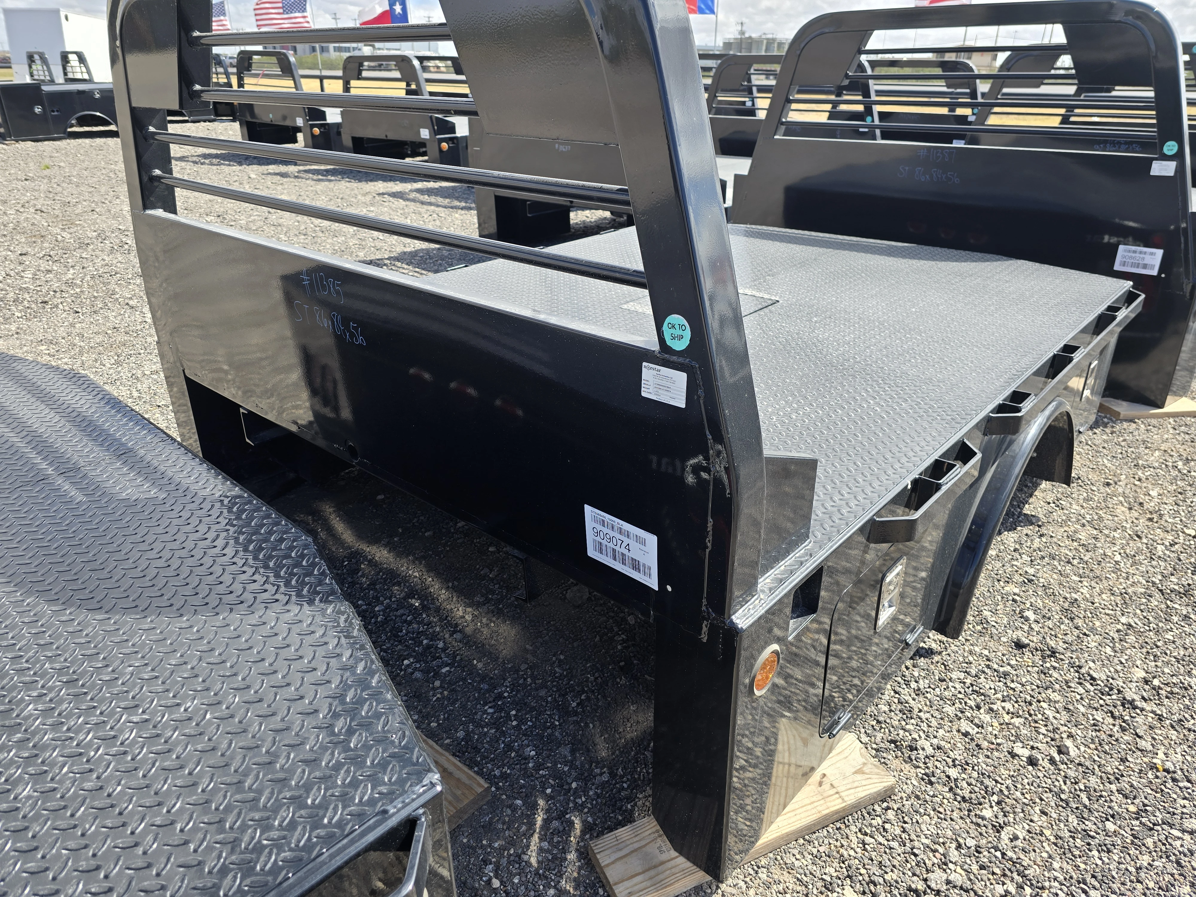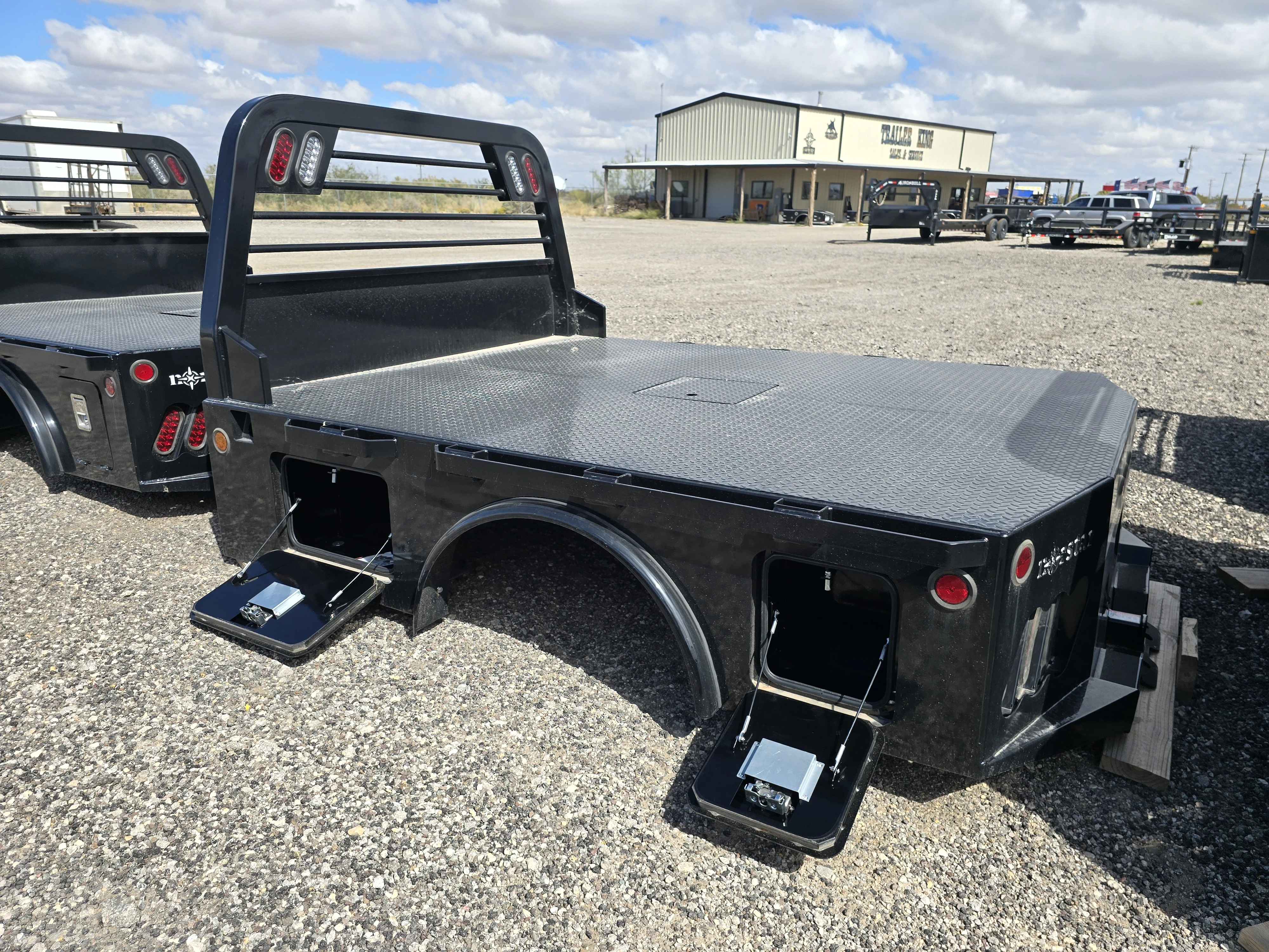 The standard 2.5” receiver allows you to add a hitch for bumper pull cargo, and a 2 5/16” gooseneck ball is standard in case you are hauling a heavyweight. Our receivers are lab tested and certified for 18,500 lbs bumper capacity and 30,000 lbs gooseneck capacity. 1/8” Diamond plate flooring will give you a lifetime of duty and both 7 way and 4 way towing plugs make sure you can hook up and go any time. Standard lifetime LED lights ensure you will never be left in the dark, and the tubular steel headache rack will protect your cab from most anything you can throw its way. Standard angled corners help you maneuver into tight spaces and standard exposed rub rail and stake pockets give you plenty of contact points for securing any load. Check out our optional features and build a bed to suit your workload today. DIM: 8'6" X 84" CTA 56". Fits Single wheel long bed Chevy/GMC/Ford