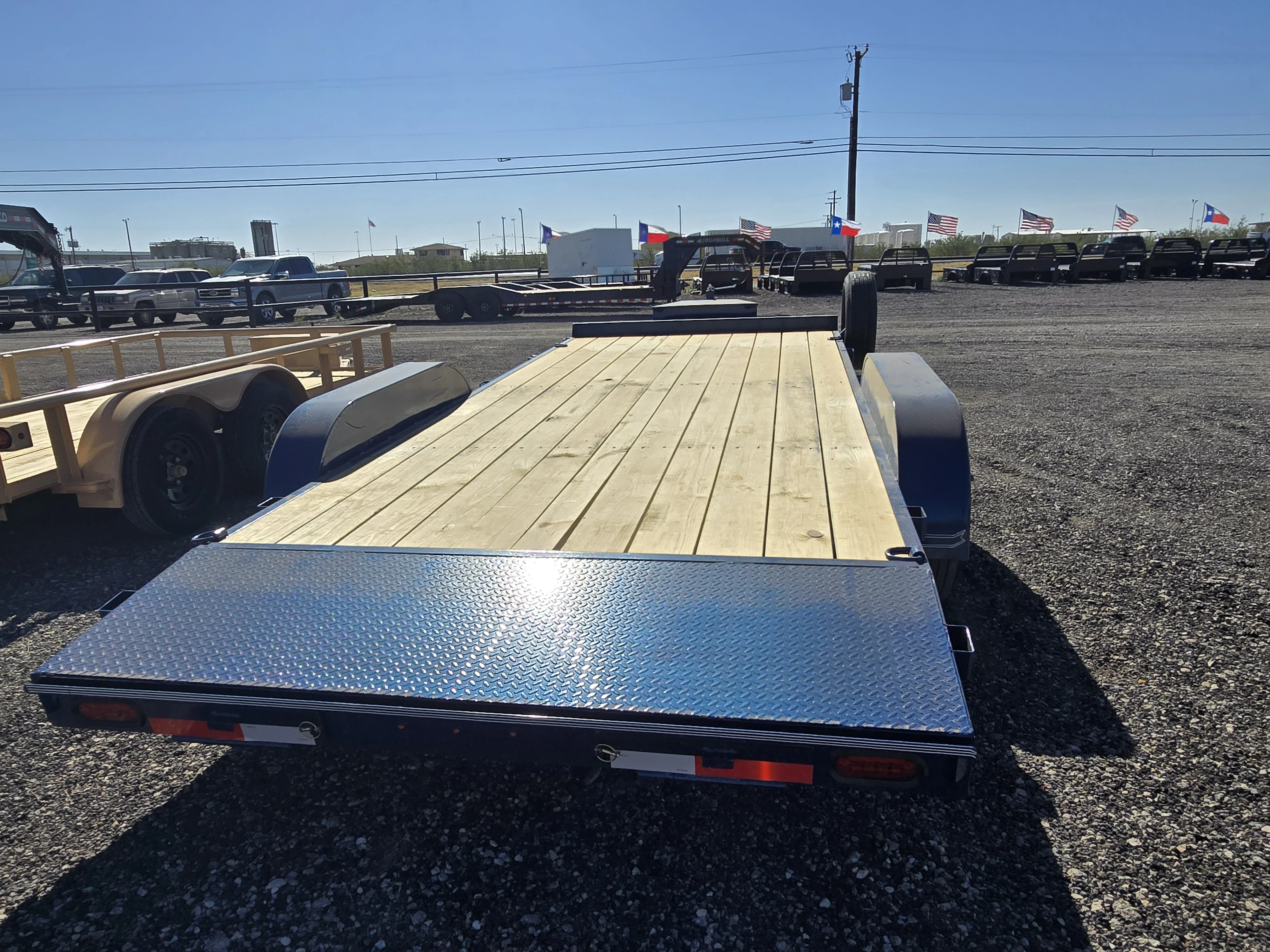 83" x 18' Tandem Axle. 12k GVWR Idler and brake with a 2' dove and slide in ramps. 8 stake pockets and 4 D-Rings. 225/75/15 Tires 10ply.